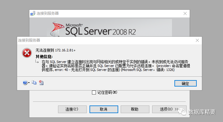 在服务器上安装了SQLServer数据库,本地访问一切正常,在其它电脑上无法访问。提示如下: