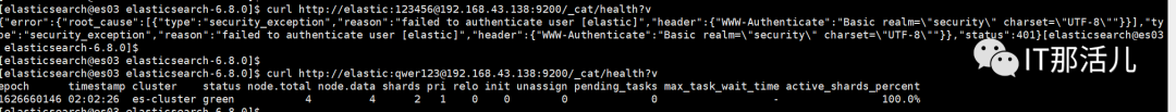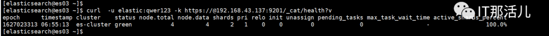 curl -u elastic:qwer123 -k https://@192.168.43.139:9200/_cat/health?v