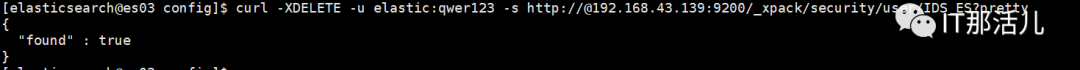 curl -XDELETE -u elastic:qwer123 -s http://@192.168.43.139:9200/_xpack/security/user/IDS_ES?pretty