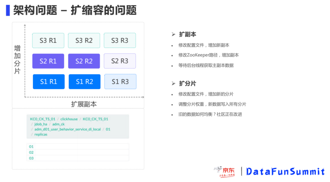 横向扩副本:直接修改配置文件,增加副本信息,然后在ZooKeeper手动的注册,之后台专门的线程会将主副本数据进行同步,操作时应该按分片逐步滚动操作,避免同时同步数据压力太大。