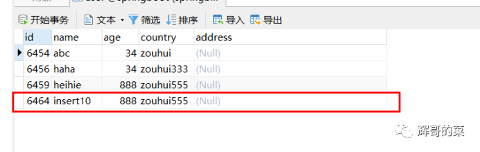 然后将异常方法去掉,int a = 10/0 去掉,运行都成功,数据插入成功