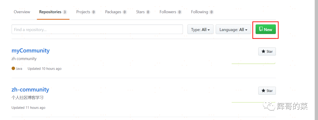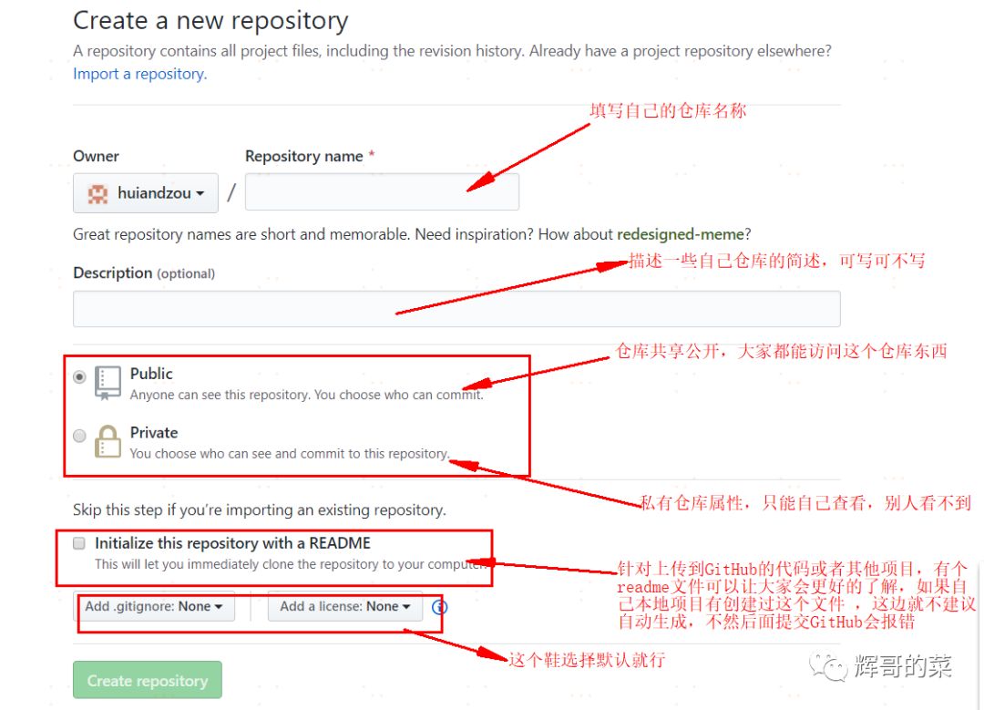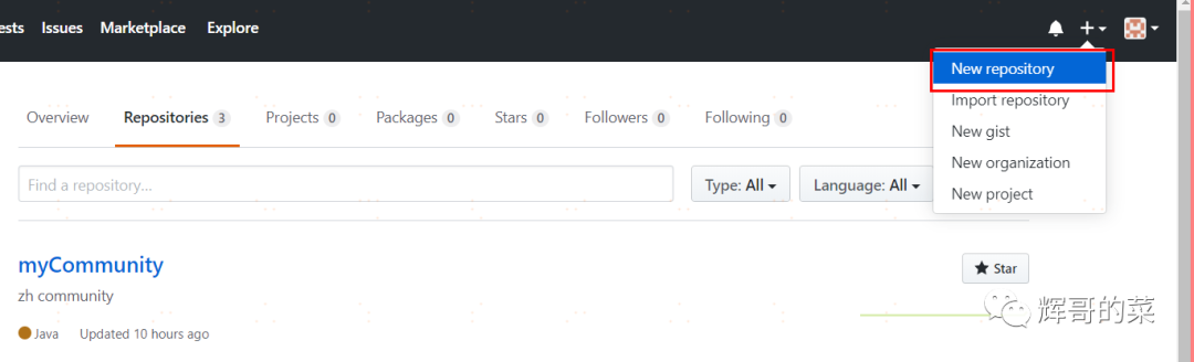 第一步,上传到GitHub肯定有自己的GitHub账号,然后创建自己的仓库,如下: