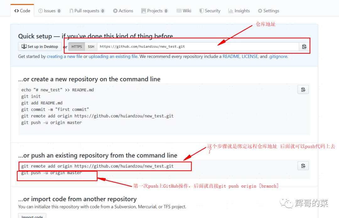 第三步,主要就是将本地代码仓库和远程GitHub仓库地址进行个绑定,这个步骤可以按照GitHub上提示操作;首先git remote add origin [github 仓库地址]