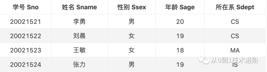 select Sname as 姓名,Ssex as 性别, Sage as 年龄, Sdept as 所在系