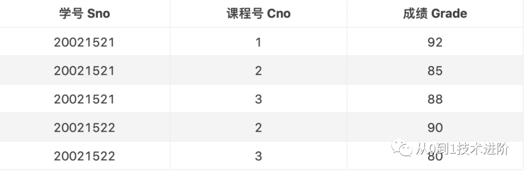 select Sno as 学号,Cno as 课程号,Grade as 成绩 from SC where Grade is not null;