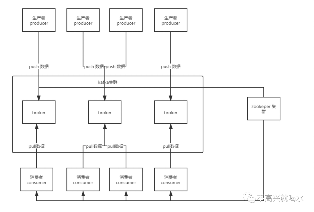 生产者如字面意思就是产生消息的客户端,负责以 push 的方式将消息发送给代理 Broker。