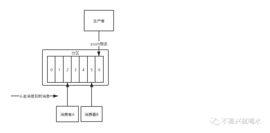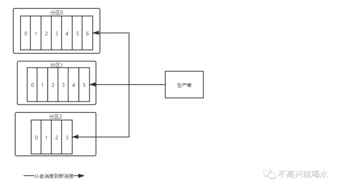 生产者偏移量 Offset 记录的是生产者在某个分区所推送的数据到了哪个位置,如图:
