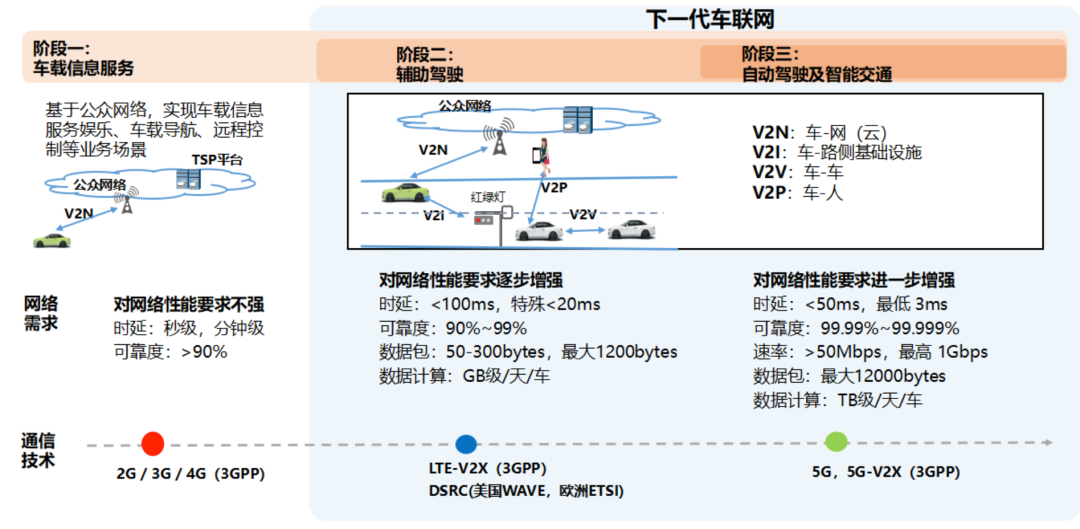 产业和技术的发展推动以车载信息服务为主的传统车联网,向以智能化和网联化为基础的智能辅助驾驶、自动驾驶及智能交通的下一代车联网发展,V2X 是下一代车联网的核心。