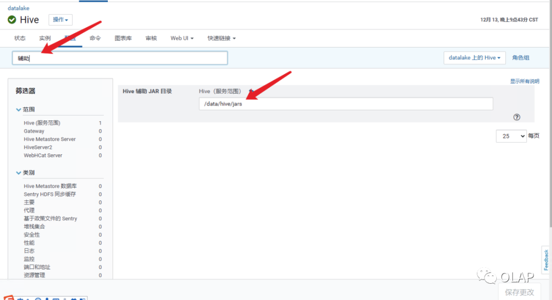 新建hive辅助路径 /data/hive/jars (根据你的需求命名)并且在CHD界面配置