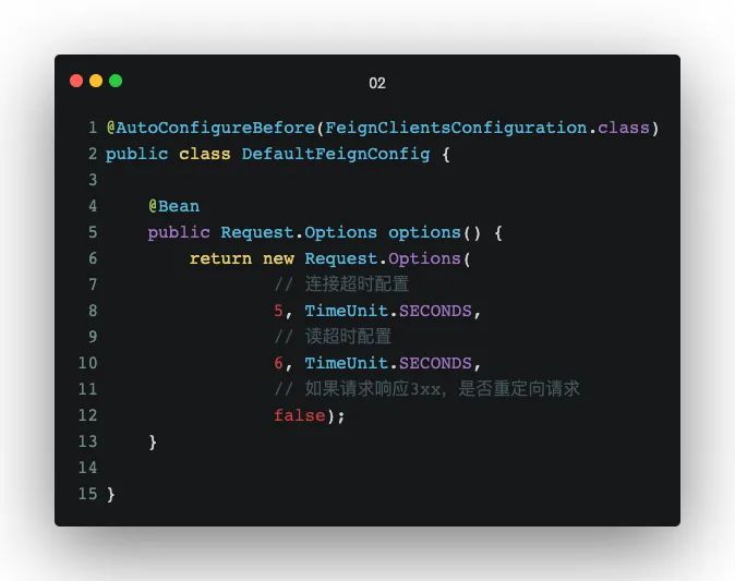 ,往容器中注入Request.Options,给Request.Options配置连接超时和读超时,如下图所示。