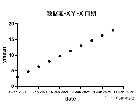 X:Dates,输入日期型x数据。软件会自动识别,并以标准格式(取决于你的软件设置)在表上显示日期。
