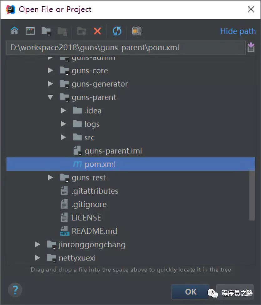 File->Open->guns-parent->pom.xml 导入需要消耗点时间