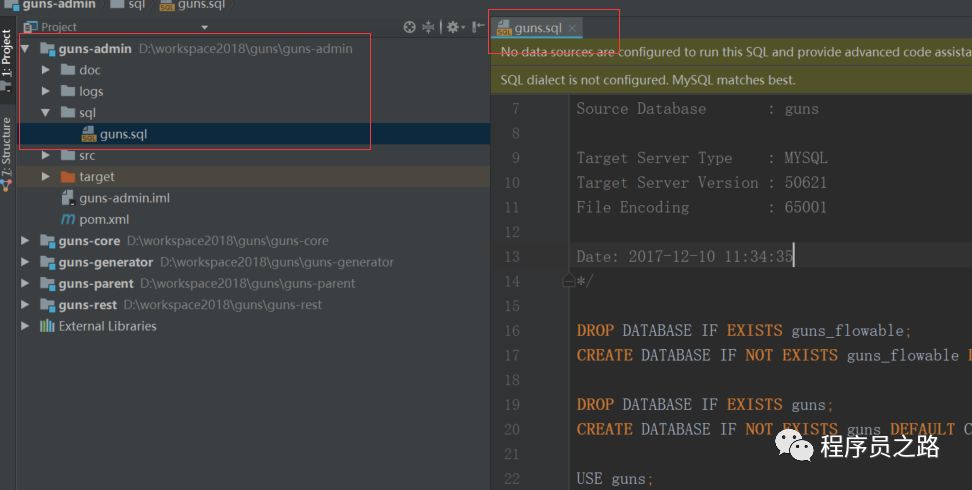 基础数据导入:子项目guns-admin->sql->guns.sql