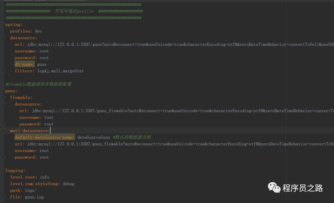guns-admin->resource->application.yml。还需要注意修改下FlowableDbInitTest,FlowableTest这两个类的测试数据库配置。