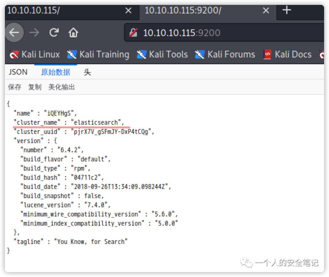 端口上的服务,从显示的JSON信息中可以得知这是 ElasticSearch