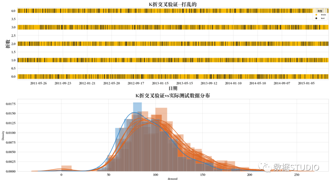另外数据分布图是5折交叉验证中每个验证数据集(黑色部分),及实际用作验证模型的数据集的组合分布图。
