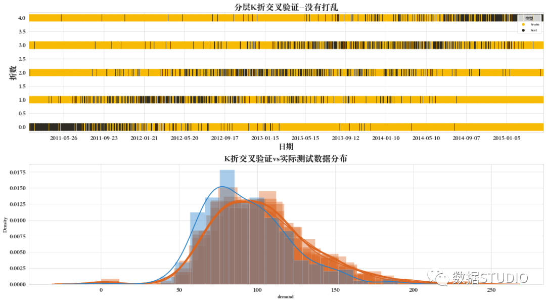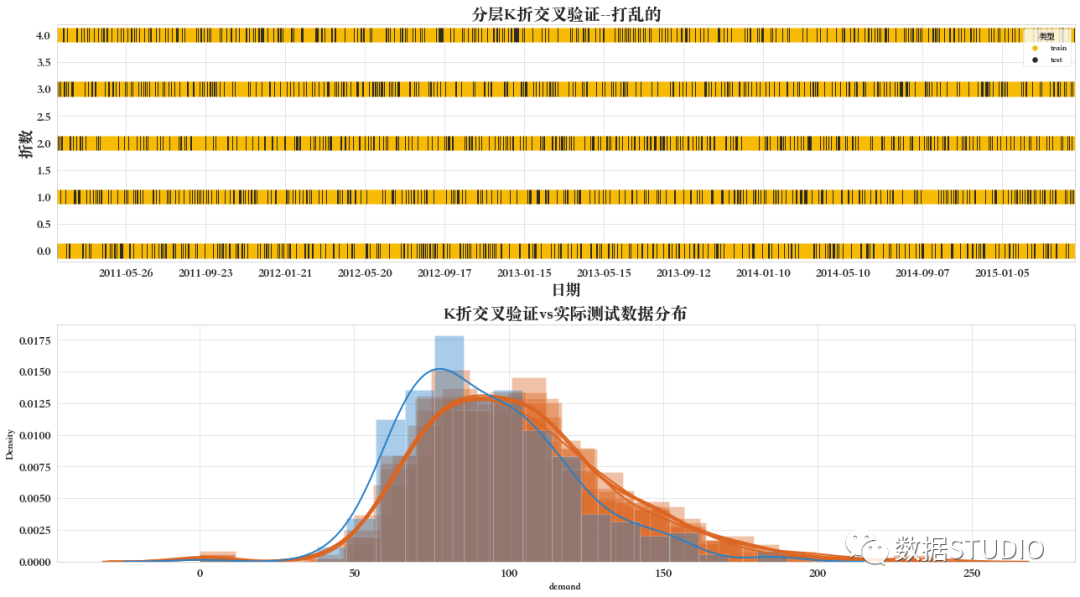 对于每个目标,折叠包大约相同百分比的样本,但首先数据被打乱。这里需要注意的是,该交叉验证的拆分数据方法是一致的,仅仅是在拆分前,先打乱数据的排列,再进行分层 折交叉验证。
