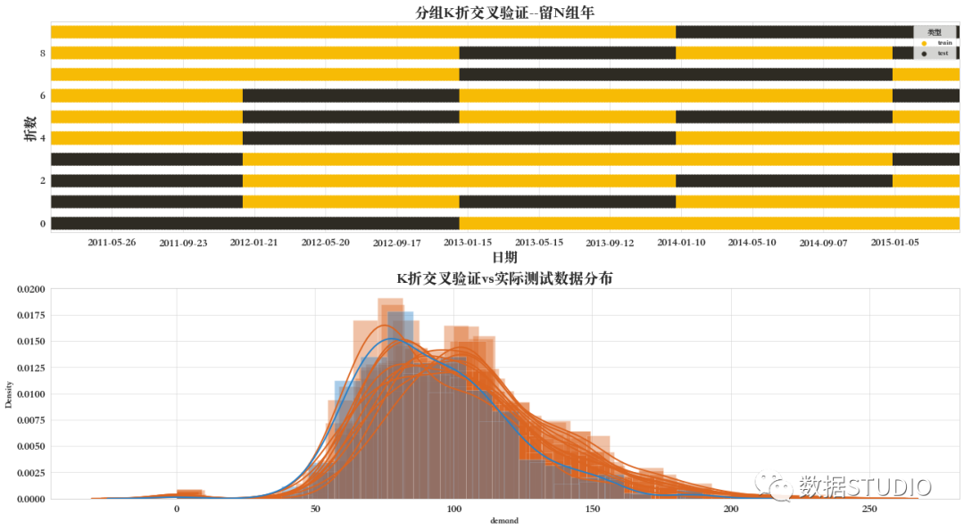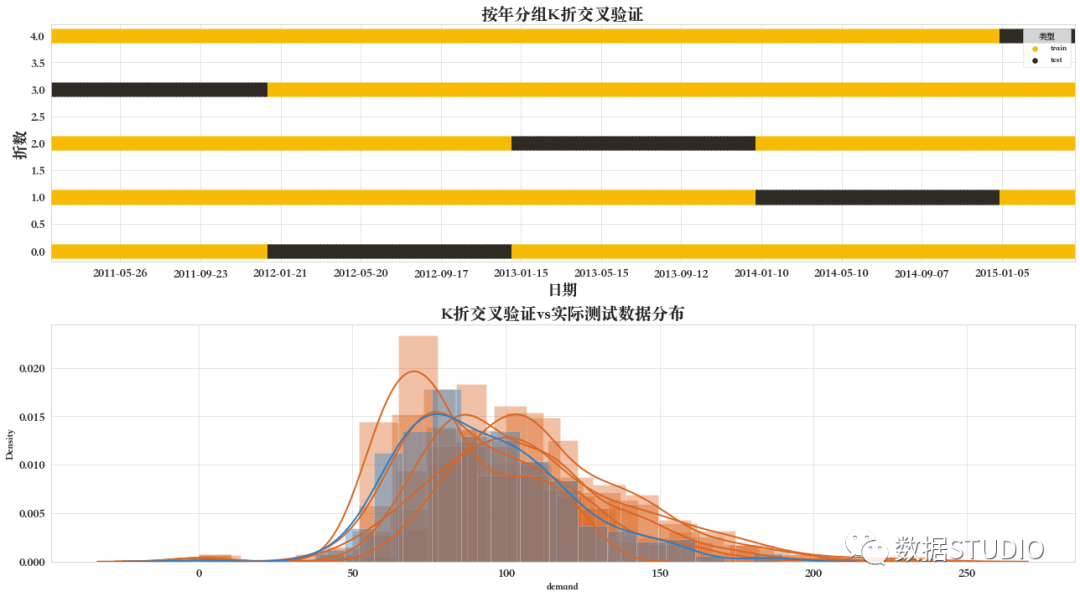 如下图所示,由于数据集原因(不是包含5个整年(组)),因此5折交叉验证中,并不能保证没次都包含相同数据数量的验证集。