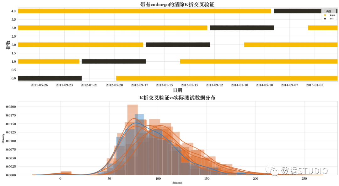 由下图可看出,不仅在训练集前后删除了部分样本,在验证集后面也删除了一些样本,这些样本的大小将取决于参数embargo