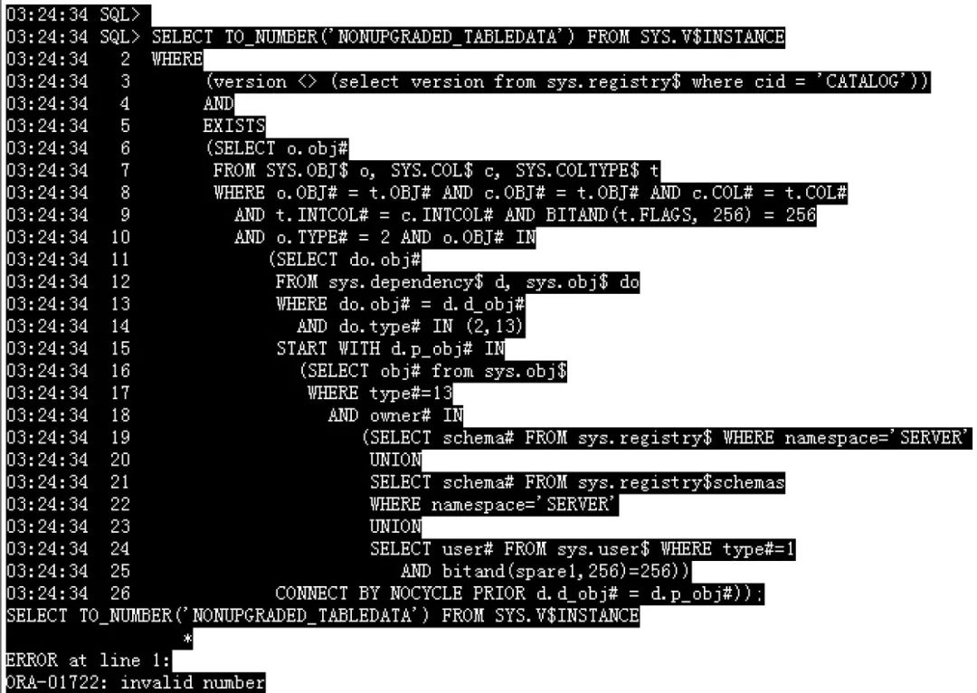 2. 在升级到 12.2 的过程中,遇到 ORA-01722 错误,如下所示: