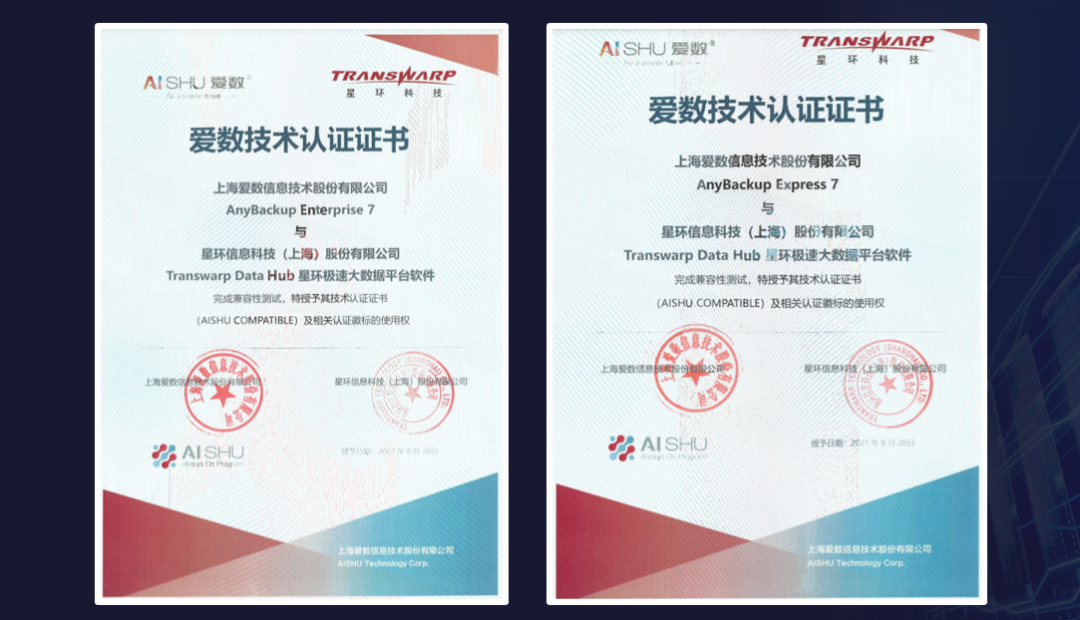 AnyBackup TDH大数据平台保护方案,可实现数据高效、经济、安全的保护,为广大行业客户的数字化转型之旅保驾护航。不仅如此,星环科技与爱数已完成了兼容性测试,成功通过了双方的产品认证,能很好地保障TDH大数据平台数据安全。