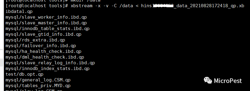 2)xbstream -x -C data < hinsXXXX_data_20210828172418_qp.xb