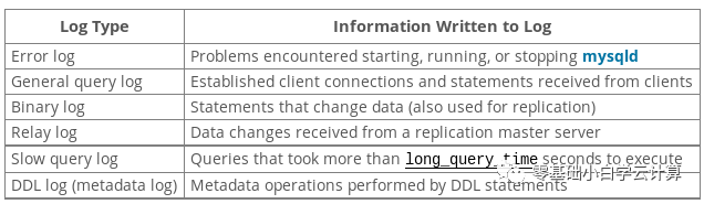 1 错误日志 :启动,停止,关闭失败报错。rpm安装日志位置 /var/log/mysqld.log
