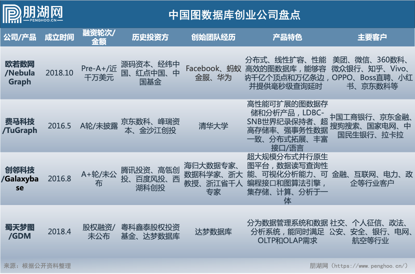 图数据库创业企业欧若数网、费马科技、创邻科技、蜀天梦图等企业获得了顶级VC、互联网巨头、传统数据库的投资,目前在A轮左右;