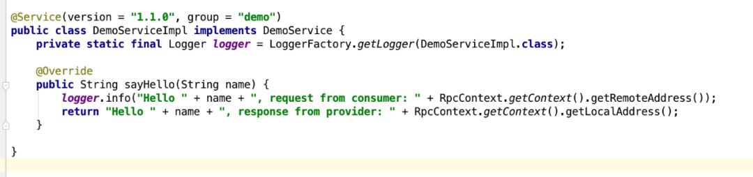 以 dubbo2.7.2版本源码中的demo为例,我们先屏蔽底层的信息交换层和传输层的调用过程逻辑,从rpc层开始分析,当服务端接收到一个请求时RPC层是怎么找到DemoService服务并调用的,以及响应过程。