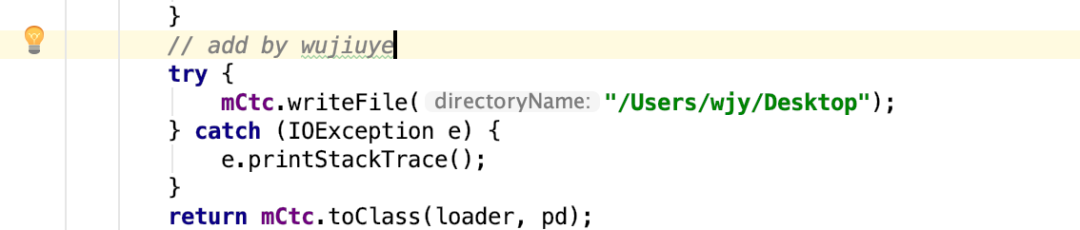 在org.apache.dubbo.common.bytecode.ClassGenerator的toClass方法中加入如下代码,将生成的类字节码输出到一个路径下,再通过反编译工具查看。当然,你要是能从乱糟糟的javassist拼接的字符串看出是驴是马,我也不说什么了。