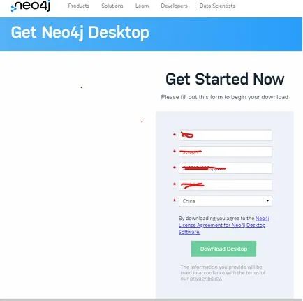 首先我们进入Get Neo4j Desktop 网页;填写必要的资料后,即可下载: