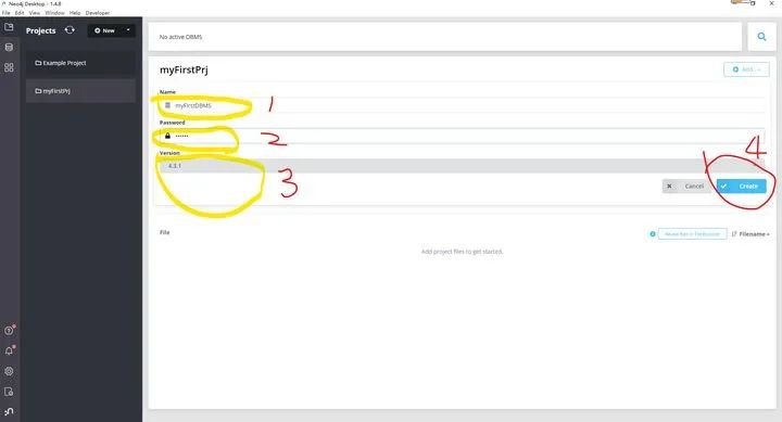 这将打开一个对话框,提示我们录入:图数据库的名称和密码,也可以选择你使用 DBMS的版本,一般默认即可。