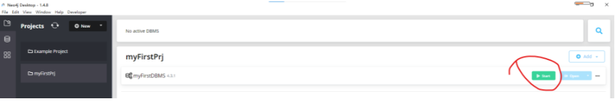 点击create ,创建我们的图DBMS,创建后,点击start即可启动。