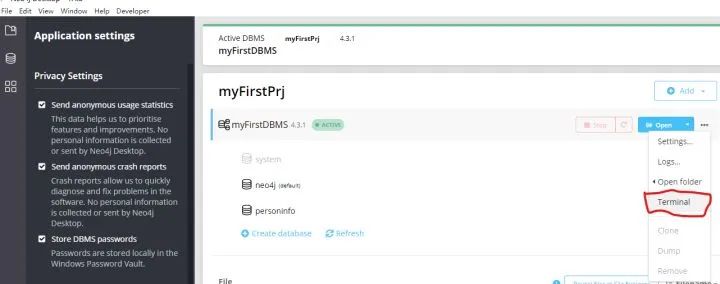 一个 DBMS 是一个 Neo4j Server 实例,因此,这个DBMS可以包含多个数据库。在 Neo4j 桌面项目中,您可以创建一个或多个 DBMS。