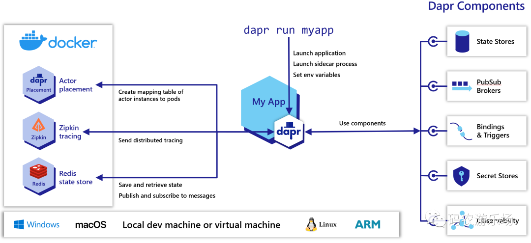 Dapr(Distributed Application Runtime ,分布式应用运行时)是微软新推出的,一个可移植的、事件驱动的运行时,它使任何开发人员能够轻松构建出弹性的、无状态和有状态的应用程序,并可运行在云平台或边缘计算中,它同时也支持多种编程语言和开发框架。