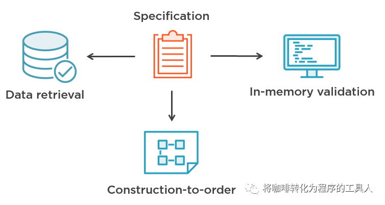 其中,使用规约模式创建新对象的场景非常罕见,这里先不做讨论。而数据检索是从数据库中获取数据,并查找到符合规约的数据记录。内存验证是指检查某个对象是否符合规约中描述的标准。