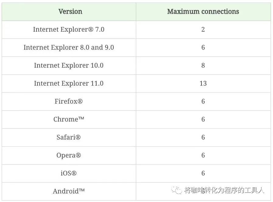 我们常见的浏览器并发限制如下: