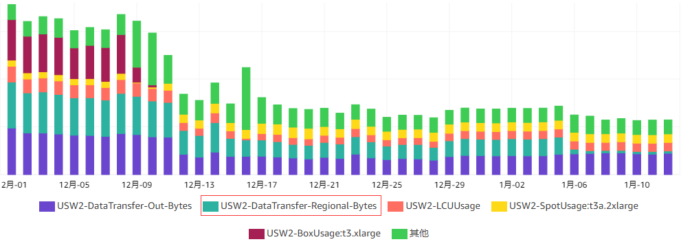 在使用竞价实例对资源进行大幅优化后,我们注意到跨可用区的流量在服务大幅扩展后占比非常高(60%),这是因为在服务之间调用时,我们将服务单元部署到不同可用区,最大限度提高服务的可用性,同时带来的问题是服务间大量的流量交互带来了跨可用区的流量费用(见图10)。