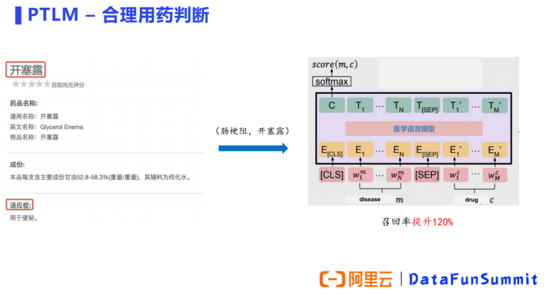 ④ 合理用药判断:是PTLM应用的另一个场景。例如尽管开塞露的药品说明书的适应症只有便秘,但医生给诊断是肠梗阻的患者使用开塞露也是合理的。这是因为虽然医生的诊断与药品说明书字面上不match,但肠梗阻实际上会导致便秘,所以经过推理医生用药是合理的,而这个推理过程用到的就是医学知识。另外合理用药还涉及到用法及剂量的合理,如诊断为“成人不能进食”的患者需要鼻饲给药,儿童用药需要根据体重计算剂量,还有药物需要首剂负荷用药。因此我们现在的工作是将说明书等原始文本,用文本生成的方法转化成逻辑表达式(logic expression),如决策树等。因为实验结果目前在投稿阶段,所以本文就先不展示模型了。此外讲者提出一个问题,医学知识图谱是医学知识最基础的一种知识表示方式,而一个全面和专业的医学知识库需要融合多种知识表示方式,那么如何用一个新的结构来表示医学知识库呢?