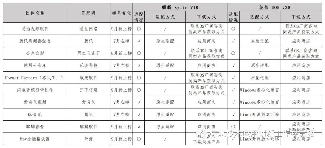 为促进信息技术应用创新产业健康发展,加快建设开放应用生态,持续提升用户满意度,打造产品适配与应用需求高效互动的长效机制,中国电子工业标准化技术协会信息技术应用创新工作委员会(简称信创工委会)结合用户的实际需求与用户体验,通过分析麒麟软件有限公司(简称麒麟)、统信软件技术有限公司(简称统信)操作系统的软件适配成果,参考市场流行的下载排行,现梳理出最常使用、下载量最多的15个软件类别共计150款产品,形成常用软件适配清单。