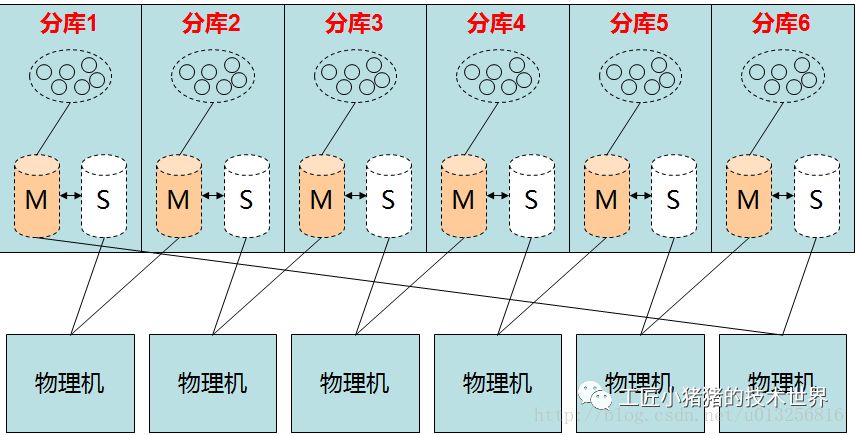 为了节省数据库的机器数量,可以采用下图中的方式部署: