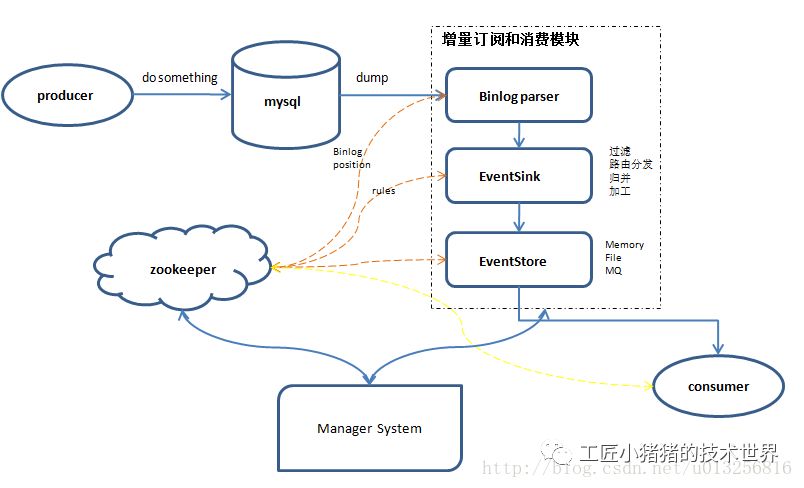 增量数据订阅和消费,用户对数据库操作,比如DML, DCL, DDL等,这些操作会产生增量数据,下层应用可以通过监测这些增量数据进行相应的处理。典型代表Canal,根据MySQL的binlog实现。也有针对Oracle(redolog)的增量数据订阅与消费的中间件。(Canal, Erosa)