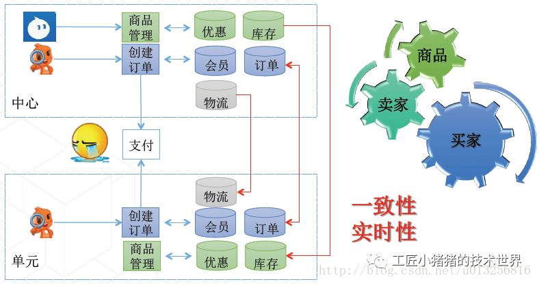 简单来说,数据的问题表现在以下几个方面:一、 如何保证数据的即时性和准确性,多中心之间需要同步卖家数据和商品数据,如果同步的延时太长,买家、卖家都不可接受,由于是异地部署,最好延时能控制在1秒内。比如,卖家改了价格或库存,用户不能过很久才看到。同样,数据正确性也是很大的挑战,因为数据故障跟应用层故障不一样,应用出故障了,可能只影响用户访问;数据写错了无法恢复。2、如何保证路由规则的一致性,要保障这个用户从进来到访问服务,到访问数据库,全链路的路由规则都是完全一致的;如果路由错误,看到的数据不正确。