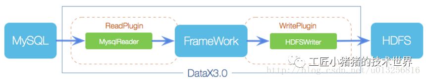 DataX本身作为离线数据同步框架,采用Framework+plugin架构构建。将数据源读取和写入抽象称为Reader/Writer插件,纳入到整个同步框架中。