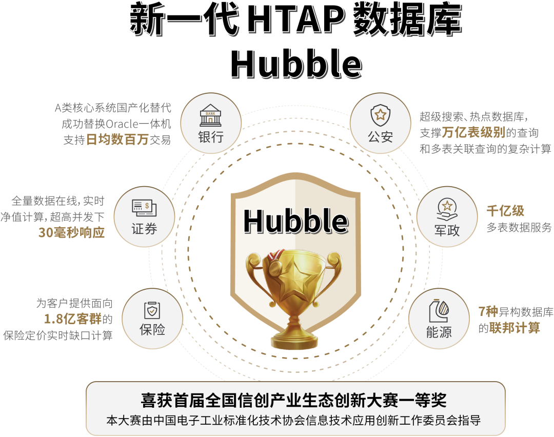 HTAP数据库技术,用性能助力产业升级:传统数据库核心做分析,对时效性的要求不高。然而在金融场景实时性要求非常高,一旦交易出现卡顿的情况,将会造成非常严重的损失。天云数据凭借其多年来在大数据分布式计算领域的经验以及多家大型银行的实践最终通过引入损失函数动态评价SQL逻辑计划的执行成本、CBO代价优化解析、Sharding切片线程级别物理资源匹配不同计算负载、TP和AP双引擎调度执行、随机和序列化IO对存储的访问、依靠数据副本机制同时支持KV键值存储和列存存储交出了完美的答案。Hubble数据库以AP和TP的技术融合实现数据产销合一。在三家大型股份银行、两家互联网银行和多家城商行部署商用,替代Oracle支撑银行核心A类交易系统56种交易; 在公安领域支撑万亿记录规模的多表关联模糊查询计算。