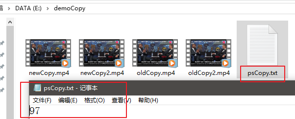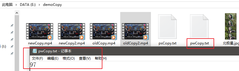 FileOutputStream fos = new FileOutputStream("e:\\demoCopy\\oldCopy.mp4")
