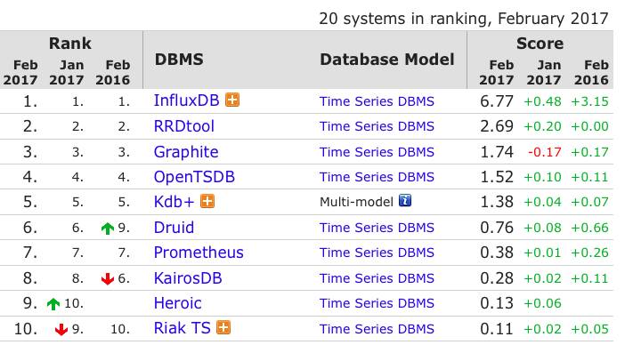 InfluxDB由golang编写,也是golang社区中比较著名的一个,目前在TSDB中排名第一。最新的版本是1.2,之前的版本之间变动很大,很多网上资料都已失效,文档要以官方为准。