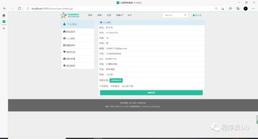 登录成功之后就可以进入到个人中心,在相关的个人中心界面可以操作相关的信息,可以修改密码和修改个人信息的操纵