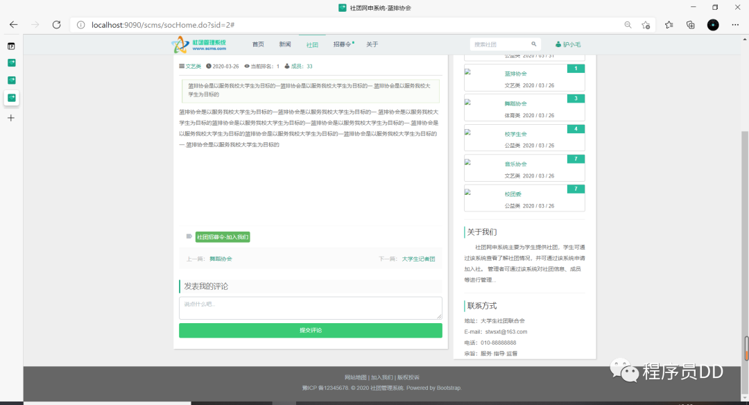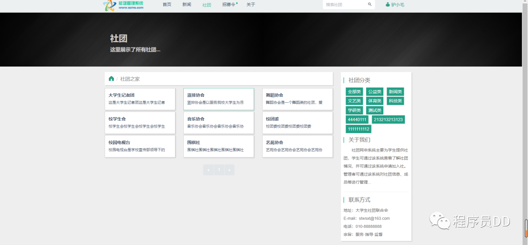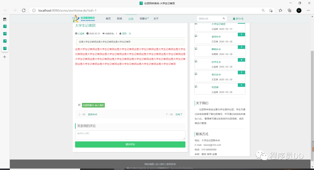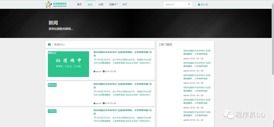 用户进入相关的社团新闻之后就可以查看相关的社团新问进行相关的操作,操作完之后就可以进销相关的查看