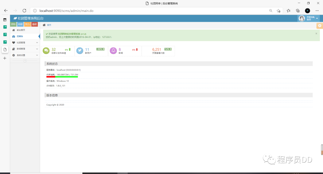 进入到后台之后就可以看到相关的后台的主页 操作可以进行相关的管理操作